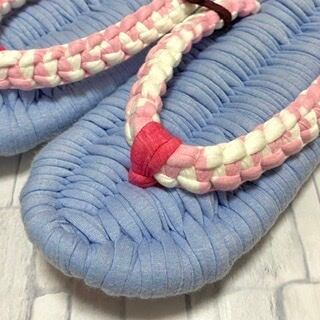 草履 白ブルー (Tシャツ生地)